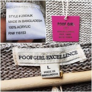Poof Girl Excellence Knit Cardigan Taupe Open Front Sweater Size L Girls