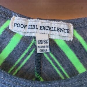 Poof Girl Excellence striped T-shirt green and grey. Girls size 6X