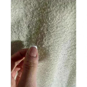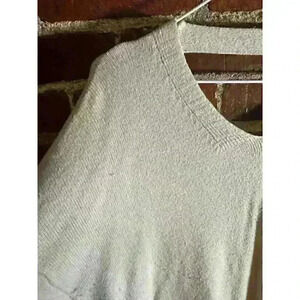 A standout feature is the criss-cross back detail, which adds a touch of contemporary flair and makes this sweater truly unique. Despite some minor piling, the overall aesthetic and comfort of the sweater remain intact, giving it a charming, lived-in look.