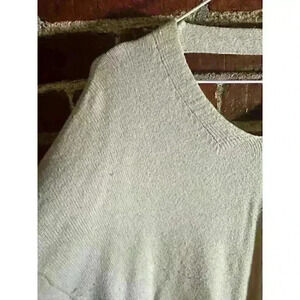 Introducing the Poof NY Cream Sweater with Criss Cross Back in Size XL, a cozy and stylish addition to your wardrobe that combines comfort with a unique design twist. This sweater is crafted from soft, high-quality fabric that ensures warmth and comfort during cooler days. The elegant cream color offers a versatile, neutral base that pairs effortlessly with various outfits, from casual jeans to more polished skirts. Designed in a size XL, this sweater provides a relaxed, flattering fit that drapes beautifully over your figure. A standout feature is the criss-cross back detail, which adds a touch of contemporary flair and makes this sweater truly unique. Despite some minor piling, the overall aesthetic and comfort of the sweater remain intact, giving it a charming, lived-in look. Ideal for casual outings, cozy nights in, or layering during the cooler months, the Poof NY Cream Sweater with Criss Cross Back in Size XL is a stylish and comfortable choice that enhances your wardrobe with a blend of classic elegance and modern detail.