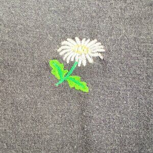 This shirt whispers simplicity with its soft black fabric and delicate embroidered daisy. It's a wearable reminder of nature's quiet charm, designed to bring comfort and a touch of whimsy to your wardrobe. A versatile top that celebrates understated beauty, blending casual style with a hint of elegance.