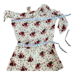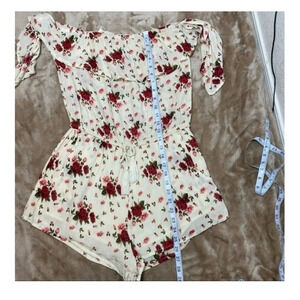 beautiful flower romper by Poof! Size Large and off the shoulder type sleeves. Perfect for date night. This romper will make you stand out in a crowd!