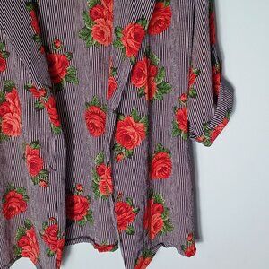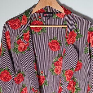 Poof! Open Front Top Womens Large Roses Striped Made in USA Feminine
