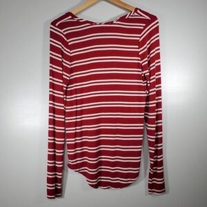 Poof! Striped V-Neck Long Sleeve Top Red White Size Large