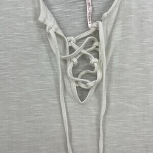 Poof Tank Top Shirt Womens Medium White Lace Up V Neck Sleeveless Lightweight