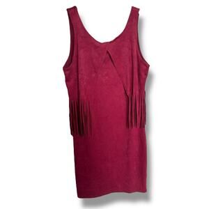 Poof! Womens Bodice Fringe Dress Microsuede Burgundy NEW Size Small