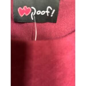 Stunning Poof! dress in a rich burgundy microsuede. This dress features a unique bodice and playful fringe detailing, perfect for making a statement. Brand new and ready to wear! Size Small. Get ready to turn heads with this eye-catching piece!