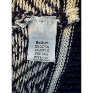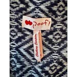 Wrap yourself in the vibrant charm of the Poof! multicolor geometric cardigan. This M-sized sweater is a delightful blend of cotton and acrylic, offering a cozy and stylish layer for any occasion. Whether you're heading to a casual brunch or a relaxed evening gathering, this long-sleeve cardigan adds a splash of color and warmth to your ensemble. Its regular fit ensures comfort, making it a versatile addition to your wardrobe. This pre-owned piece is ready to bring joy to your everyday style.