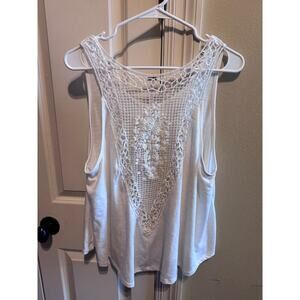 Poof Women's White Lack Back Tank Top Cotton Blend Sz L