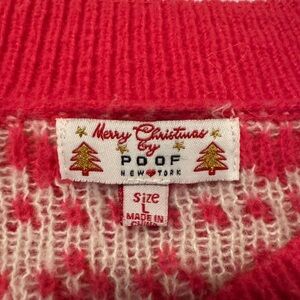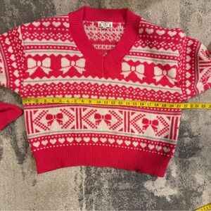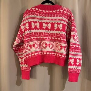 Stay warm and stylish with this cozy pink and white sweater. Perfect for any casual outing.