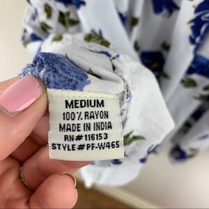 This fun and flirty Poof! Clothing Company blue and white floral romper features a ruffled off the shoulder sleeve combined with adjustable spaghetti straps to keep everything where it needs to be. Tie front and elasticized waist. Great used condition. Please see photos for additional details. Pit to Pit 17“ Length 26“ Rise 2”