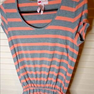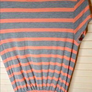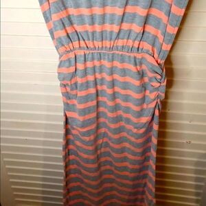 Very soft and comfortable short sleeve cotton striped maxi dress with ruching detail at the waist