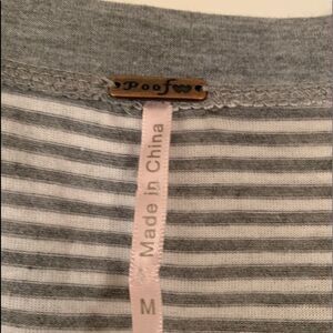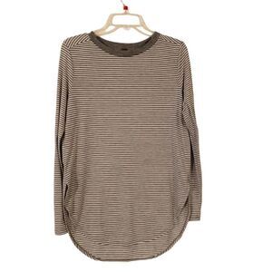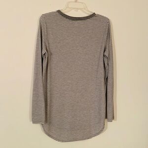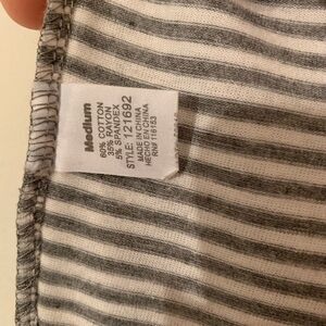 Super fine jersey and soft. shirt tail style bottom hangs lower and the back. Coloring on measurement close ups are more representative of the true color. Excellent condition