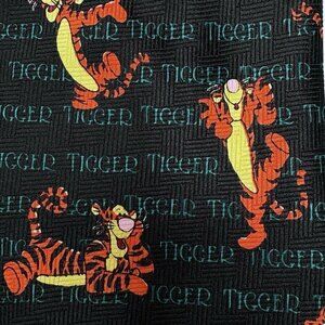 Pooh Disney Tigger VTG 90s Necktie Black Multicolor Tigger Name Repeated Pattern