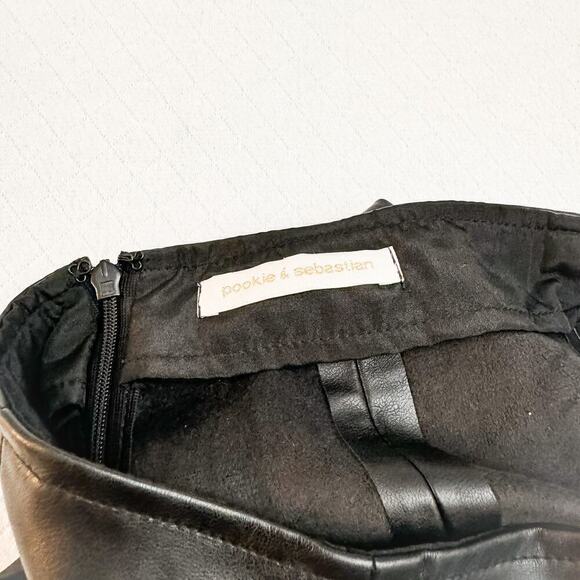 Pookie & Sebastian Black Faux Leather Front Slit Skirt Size Small