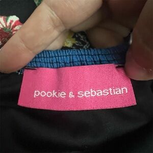 Pookie & Sebastian M Dark Floral Geometric Boho Ruffled Off Shoulder Mini Dress