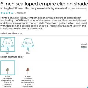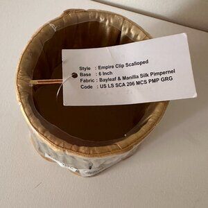 Brand new with tags Pooky clip on lamp shade. So pretty, very good quality. Purchased but no longer need and outside return window. 5"H, base 6"W, top 4"W.