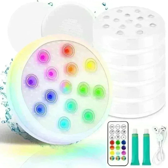 Pool Lights, 6 Pack Rechargeable Submersible 14 LED Lights with Remote, IP68 Waterproof, Underwater Lights Built-in Magnet, RGB Color Changing Lights for Pool, Pond, Fountain, Aquarium, Bathtubs