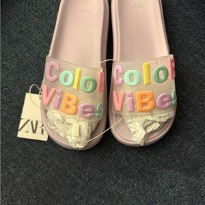 Cute colorful pool slides! Can be worn with any swimsuit. Small platform “ color vibes”