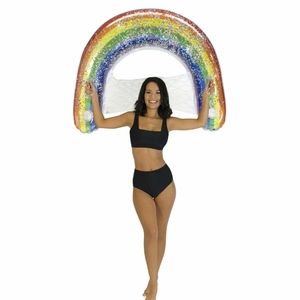 ✨️Surround yourself with color as you soak up the sun in the Rainbow Collection Glitter Sun Chair from PoolCandy!