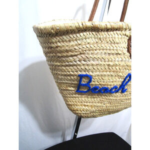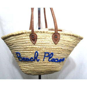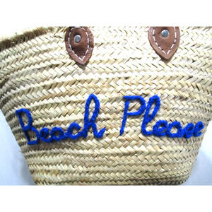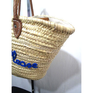 POOLSIDE "BEACH PLEASE" LARGE STRAW & LEATHER BEACH TOTE BAG