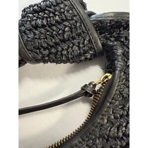 Black straw hobo bag. Zipper closure. No strap. 13" x 10" x 2". Imported.