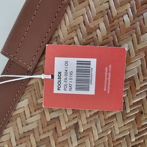 This clutch bag is the perfect staple in your wardrobe. The flat design and tonal straw and leather color palette are both chic and minimalistic. It features both a zipper and a magnet for closure, keeping all of your valuables safe.