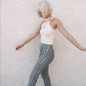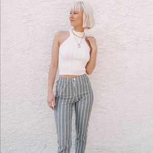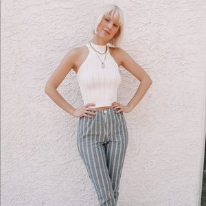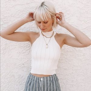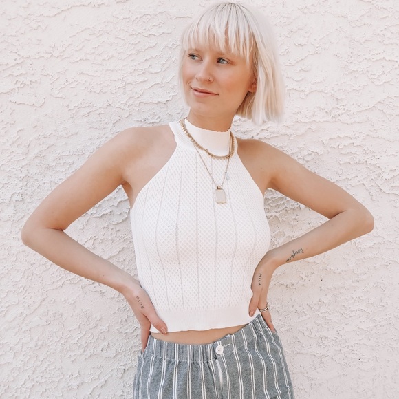 White high neck crop with a textured fabric - stretchy material