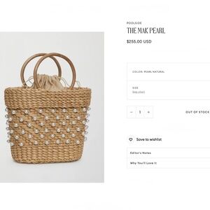 New with tags Poolside The Mak - Faux Pearl bag. The Mak mini tote bag is one of Poolside's most popular silhouettes of all times. This version features hand embroidery with over 100 faux pearls. As shown in the pictures listed the little tote will complete any outfit as a fun and feminine accessory and hold all necessities like your iPhone , keys, lipstick etc .