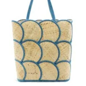 Poolside Denim Trim Scallop Straw Wicker Tote Beach/Bag