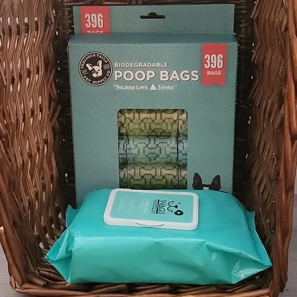 396 unscented poop bags..100 fragrance free pet butt wipes..neither item never opened...