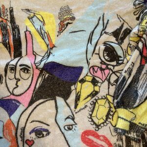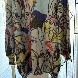 Vibrant Picasso Pop Art Wood Knit Tunic Dress, a true statement piece for any fashion lover!-Picasso Print Cotton/Wool Blend Long Tunic Sweater Artsy Cottage Core Wearable Art Plush Art Museum Comfort Relax Fit Large. Pit to Pit 24. Length 31 Long Sleeve. XL OVERSIZED. RELAXED FIT Tag says One Size - Fits like a L/XL