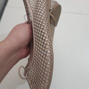 Pop Attraction Nude Women's Size 8.5 Beige Mesh Rhinestones Jewel Ballet Flat