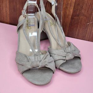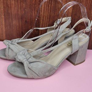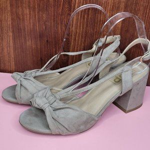 Pop Buckle Taupe Block Heel Suede sandals Sz 9