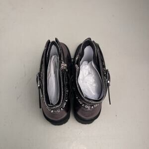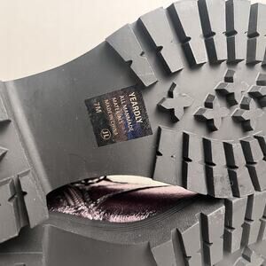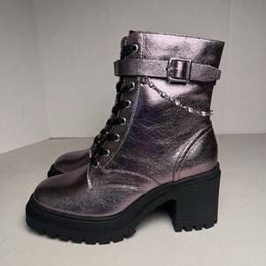 Pop Yeardly Pewter Combat Boots Metallic Purple Lug Sole Heeled Lace Up Chain Punk Size 7 $90