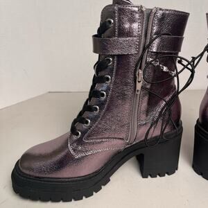 Pop Combat Boots Metallic Purple Lug Sole Heeled Lace Up Chain Punk Size 7 $90