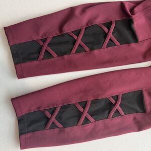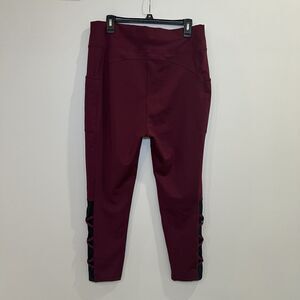 Pop Fit High Waist Plus Size Leggings Size 3XL Burgundy Black Mesh