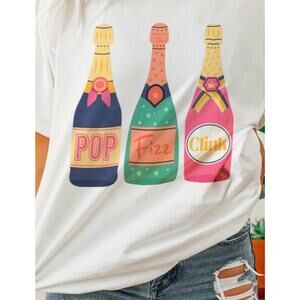 Pop Fizz Clink Golden Rose Champagne Trio Oversized T-Shirt Sz M/L