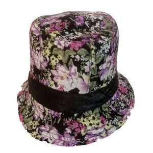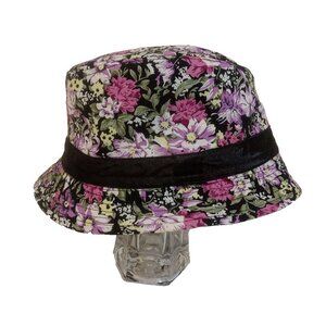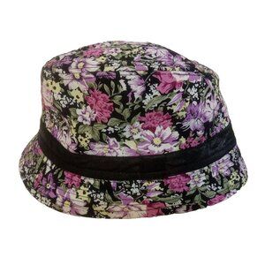 Pop Headware Hat Fedora Style Womens One Size Black Multi Floral Short Brim