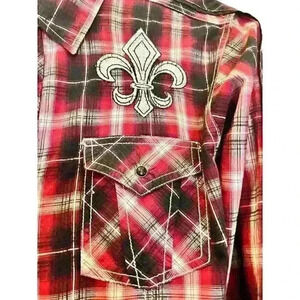 Pop Icon Clothing for Buckle XL Plaid Embroidered Fleur De Lis Pearl Snap Shirt