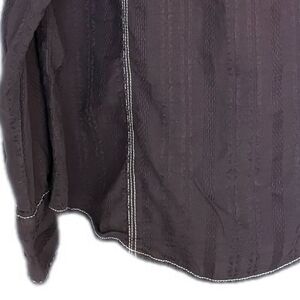 Textured fabric, double stitching, pearl snaps.