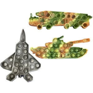 New in package features a novel camouflage fighter jet and a tank popper in big size and grey jet. Suitable for various preferences and occasions, and perfect for children who are obsessed with military action, military transport, army vehicles, and war equipment. Great for kids of all ages to play pop bubble games with friends, and it allows family members to play together to enjoy more fun.