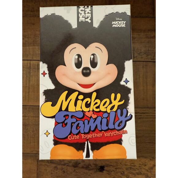 This is a blind box collectible keychain figure from the POP MART Mickey Family Cute Together series featuring beloved Disney characters Options includ, Mickey Mouse, Minnie Mouse, Pluto, Donald Duck, Daisy Duck, Goofy, Chip, Dale, and a secret rare edition.