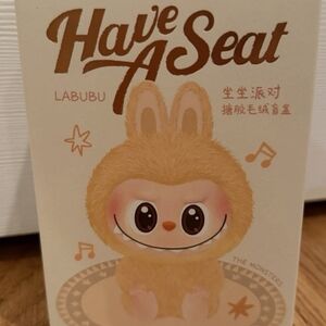 Adorable Pop Mart Labubu 'Have A Seat' collectible figure. Features a cute character with bunny ears. Perfect for collectors.