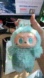 The image features a collectible toy from The Monsters Big Into Energy series by Pop Mart, specifically a "Labubu" figure in a green, fluffy rabbit-like costume.
