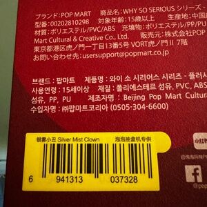 Pop Mart WHY SO SERIOUS Hacipupu "Silver Mist Clown" Vinyl Plush Pendant - New