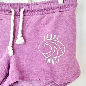 Pop Surf Kauai Hawai'i Terry Knit Purple Athleisure Lounge Shortie Shorts Sz M