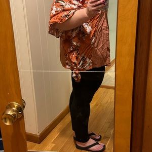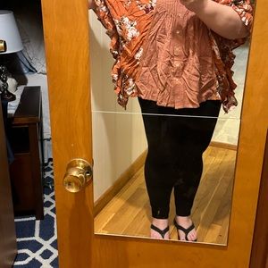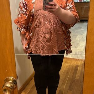 Super fun and flowy top! Size small but easily fits L/XL.