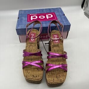 Pop Womens Kallie Heeled Sandals Pink Fuschia Size 9.5 ● New in Box Condition - See Photos ● Color: Pink Fuschia ● Size : 9.5 ● Features: Comfort ● Closure Type: Buckle ● Platform Shoe Height: 1 1/4 Inches ● Shoe Heel Height: 2 Inches ● Upper/Outer Base Material: 100% Canvas ● Shoe Lining Material: Polyurethane ● Sole Material Content: 60% Polyester, 40% Unit Molded Polyurethane ● Toe Type: Open Toe, Square Toe ● Shoe Strap Type: Ankle Strap ● Heel Style: Block Heel These Pop women's Admission high heeled sandals are a unique warm-weather style showstopper. Featuring metallic silver straps and a cork heeled base, this open square-toe style has an ankle strap closure. Wear them with a dress or skinny-leg jeans and a blouse. Fast shipping (I Ship Daily) - Pet free - Smoke free I have over 1000+ additional unique items in my store/closet. Take a look. Let me know if you have questions. Thank you for supporting my small business.