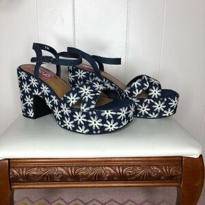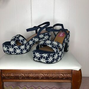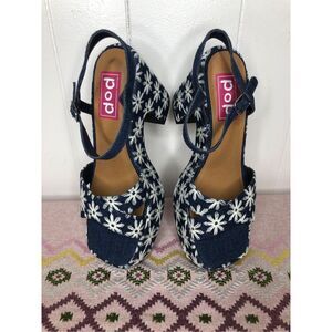 Pop Womens Daisy Flowers Grandiose Denim Chunky Platform Heels Blue White 8.5